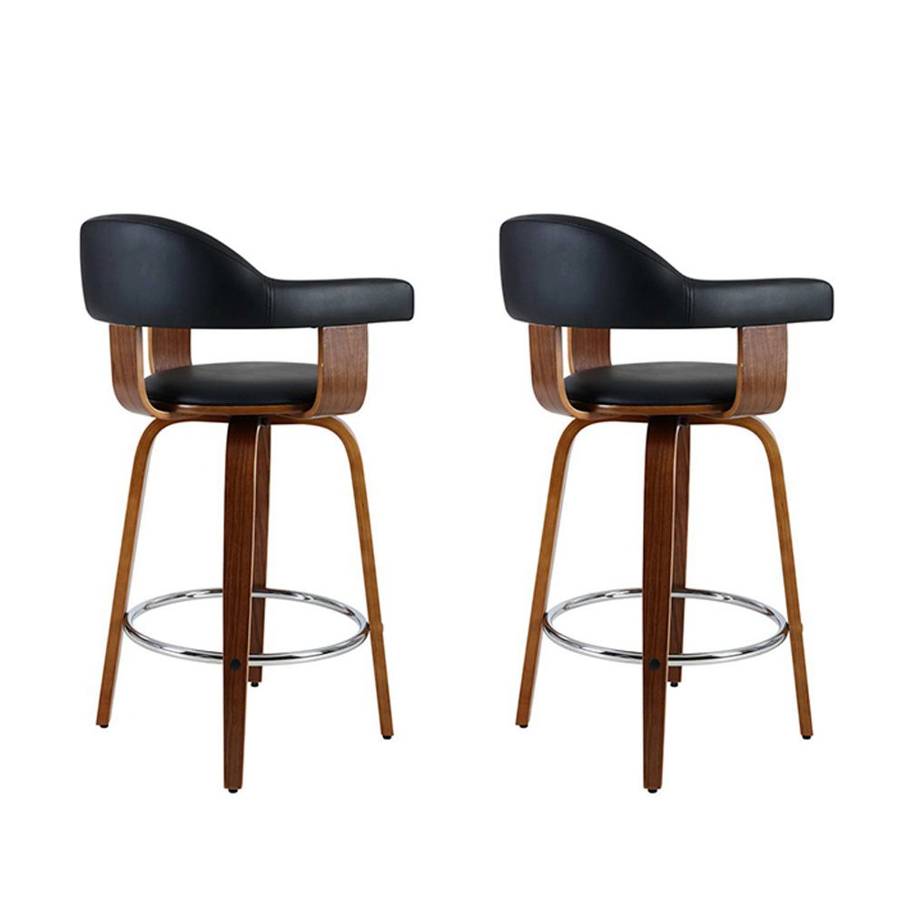 Meticulously crafted with solid plywood in a stunning darkwood finish for the frame, the bar stools feature a padded PU Leather seat which fully rotates and a mid-height backrest which provides great support. The anti-slip floor protectors at the bottom of the legs ensure a no marks will be left on your floor.