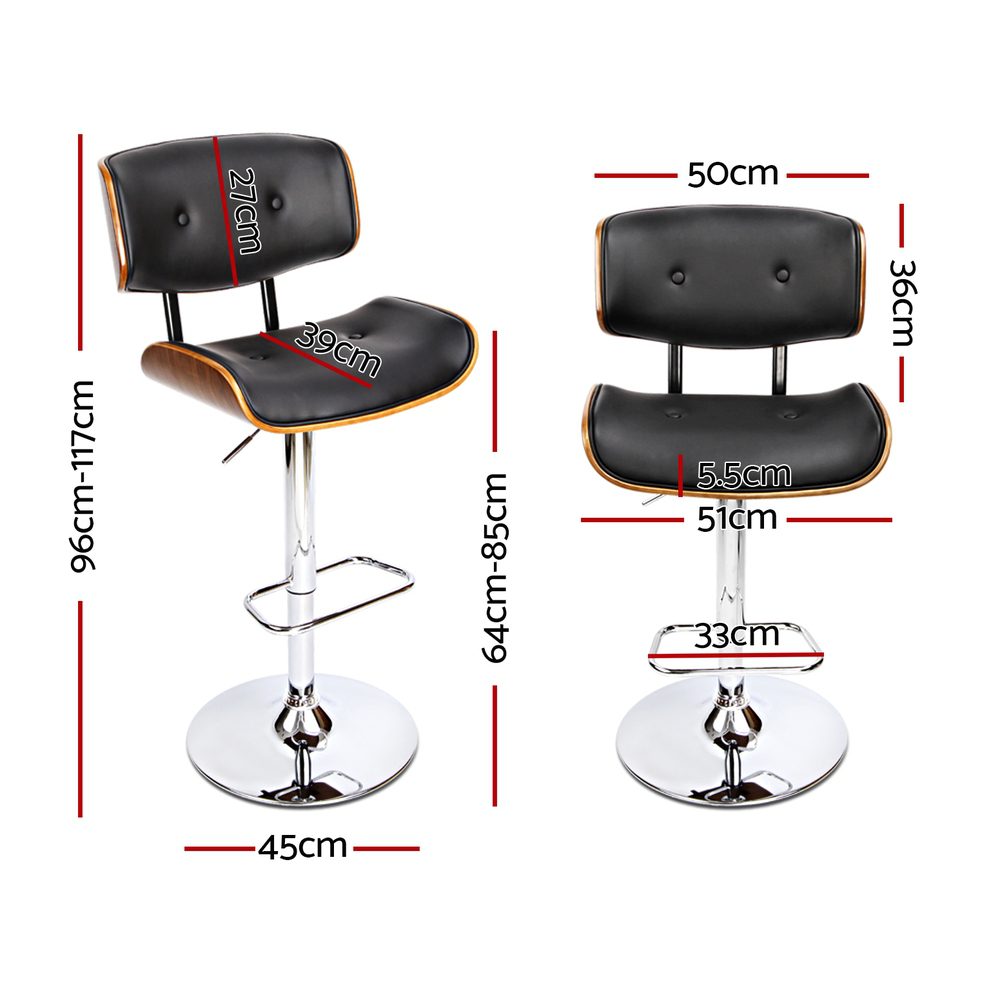 Artiss 4x Bar Stools Gas Lift Leather Black