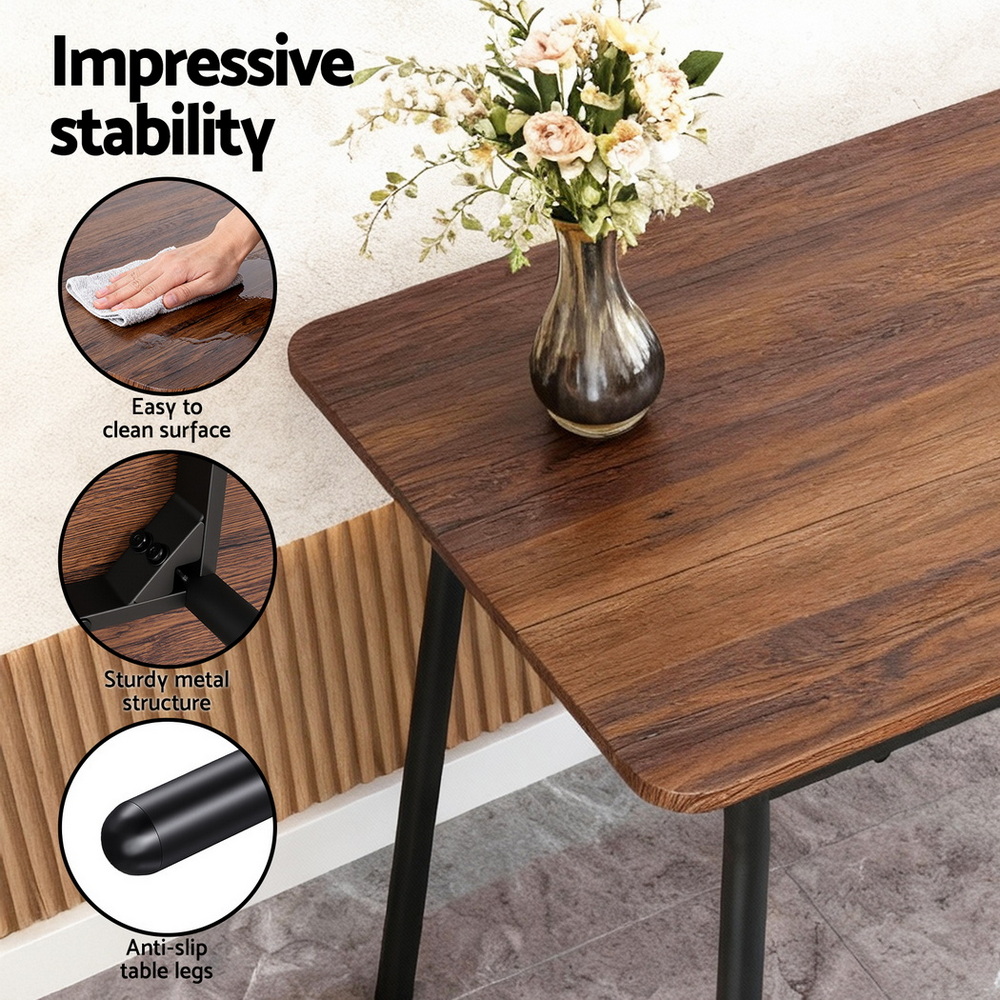 Need a sleek, practical solution for your meals? This fantastic Artiss 4-Piece Dining Set is the ultimate space-saving furniture solution for any small kitchen, apartment, or breakfast nook. The set includes a spacious tabletop, two stable chairs, and a comfortable bench, making it easy to seat four people. The design features a rich Rustic Brown wood-look surface paired with a modern Black frame for a contemporary industrial aesthetic.