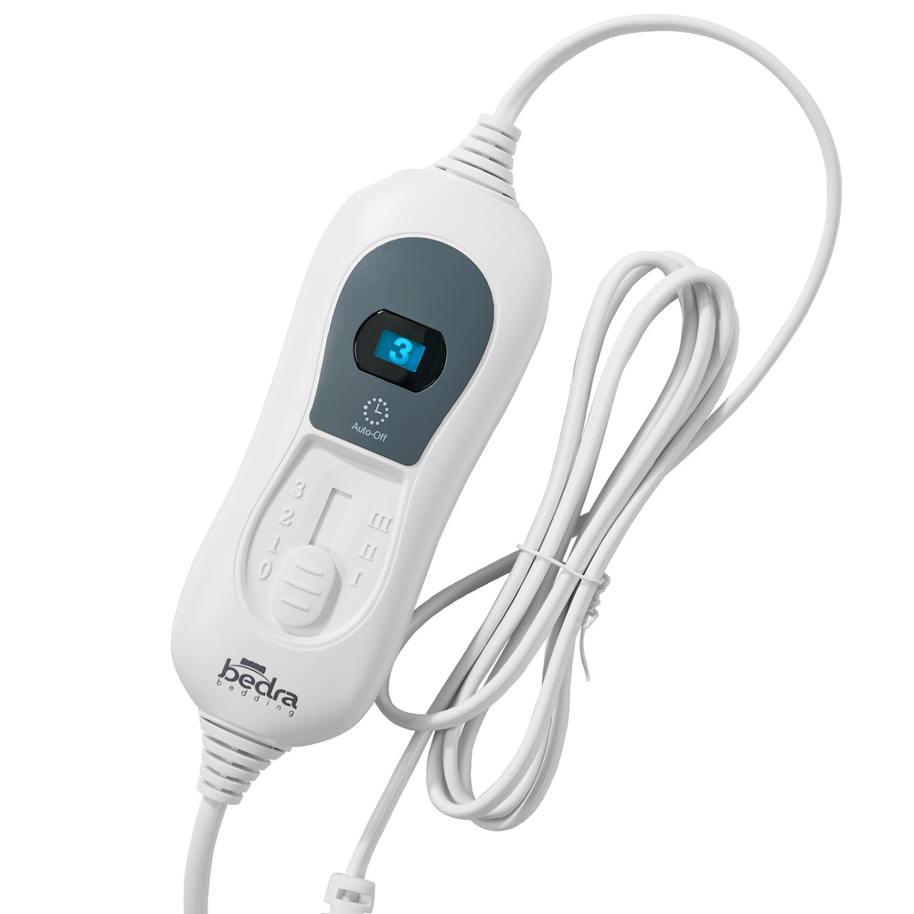 The luscious fleece and polyester combo electric blanket fits snuggly on top of your mattress with its fully-fitted design of up to 40cm depth so that it always remains in place. To warm up the bed, just use the controller to set the desired temperature with a selection of three heating levels, conveniently indicated on the LED display, to suit your preference. The heat distribution is spread evenly throughout the blanket so that you need not worry about any cold fronts from head to toe. Better still, the smart controller also features a handy timer that lets you set the heating period from one to 3 hours.