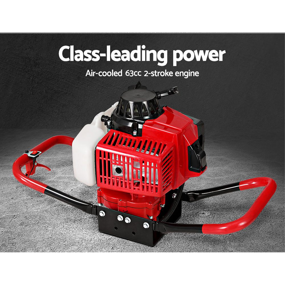 The GIANTZ Post Hole Digger is geared up to do simple post digging as well as serious deep hole boring. Its class-leading 63cc 2.2kW 2-stroke petrol engine revs up to 7500rpm to get your hole dug out with precision and ease. The advanced vertical gearbox design also allows for better efficiency and reliability.