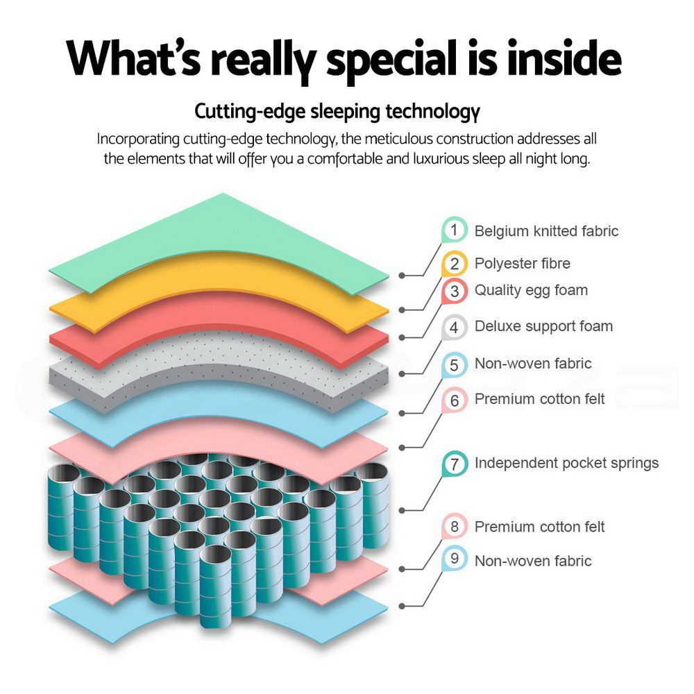 Covered with premium Belgium knitted fabric for unsurpassed softness and body heat dissipation, the Giselle Bedding Firm Mattress is also highly breathable and dust mite and mould-resistant with no necessity to turn over the mattress unlike other inferior alternatives. Handy side handles enables you to position the mattress easily.