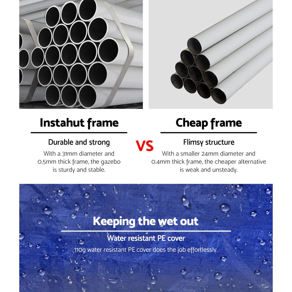 You can bring your canopy anywhere with a handy carry bag. And setting it up is easy and relatively quick. So choose an INSTAHUT canopy for their next outdoor bash or gathering and enjoy the festivities with total peace of mind.
