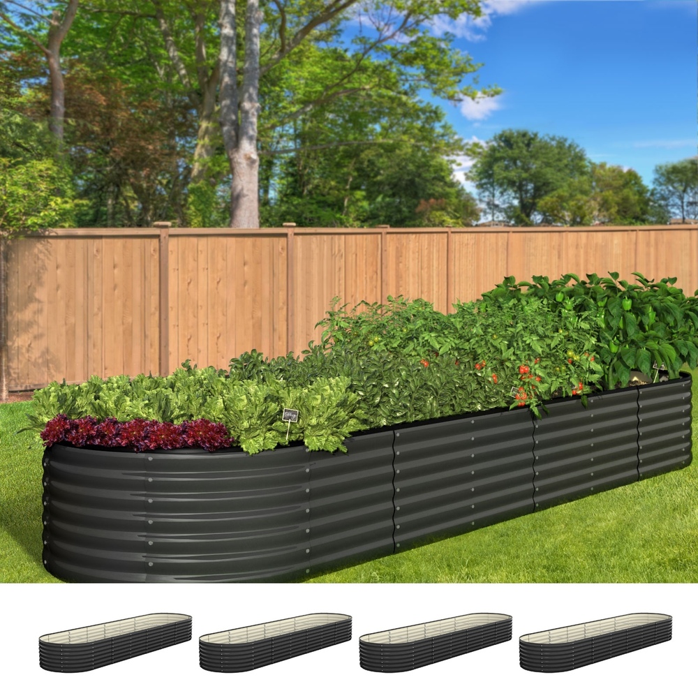 Made from quality galvanised steel, the garden bed is durable and rust-free. The epoxy paint finish is also given a non-toxic coloured steel surface treatment to withstand the weather elements better and maintain its looks. Plus, it is now upgraded with horizontal tie rods and reinforcement strips to ensure that the elliptical-shaped garden bed is strong and sturdy for long-lasting use.