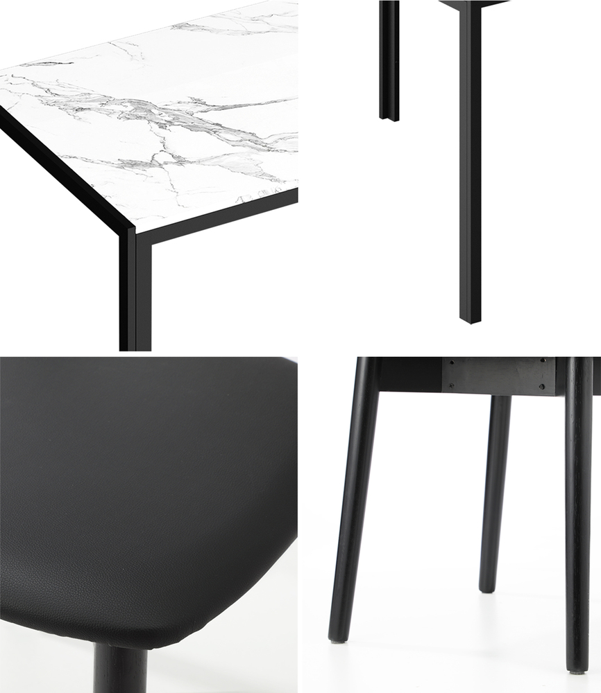 Experience the cohesive aesthetics of this set, where the synergy between the dining table and PU Leather Dining Chairs creates a curated and refined look for your dining space. Meticulously selected materials and finishes ensure that every element complements the other, enhancing the overall appeal of your home.