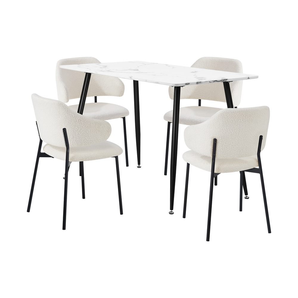 Immerse yourself in the epitome of modern elegance with our Dining Table and Sherpa Dining Chairs Set by Oikiture. The sleek lines of the contemporary dining table set the stage for a dining experience that seamlessly blends sophistication with comfort. Paired with our sumptuous Sherpa Dining Chairs, the set becomes a statement piece that captures attention and admiration.
