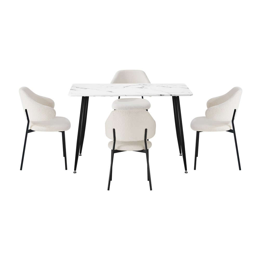 Oikiture 120cm Rectangle Dining Table with 4PCS Chairs Sherpa White