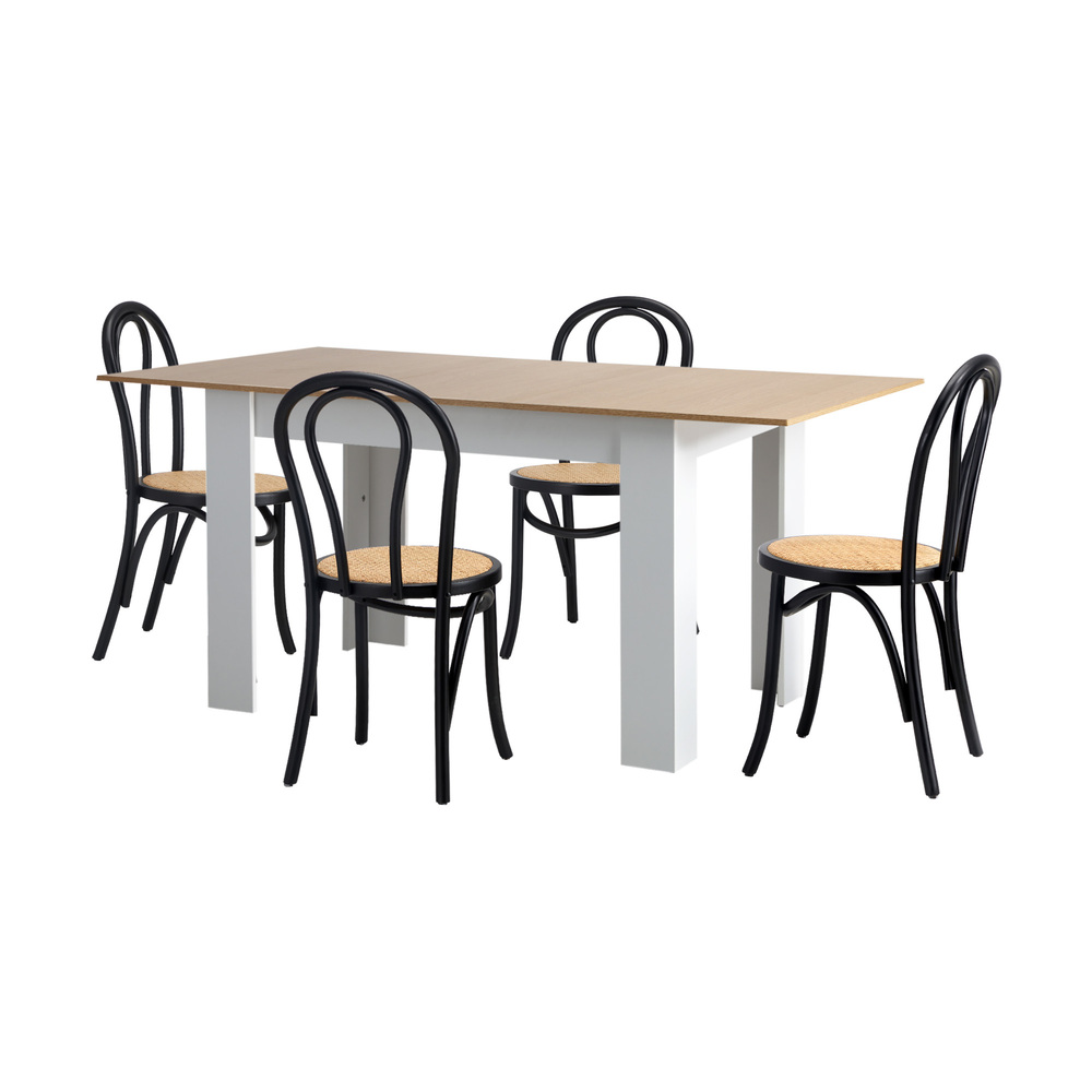 Oikiture 160cm Extendable Dining Table with 4PCS Crossback Chairs Black