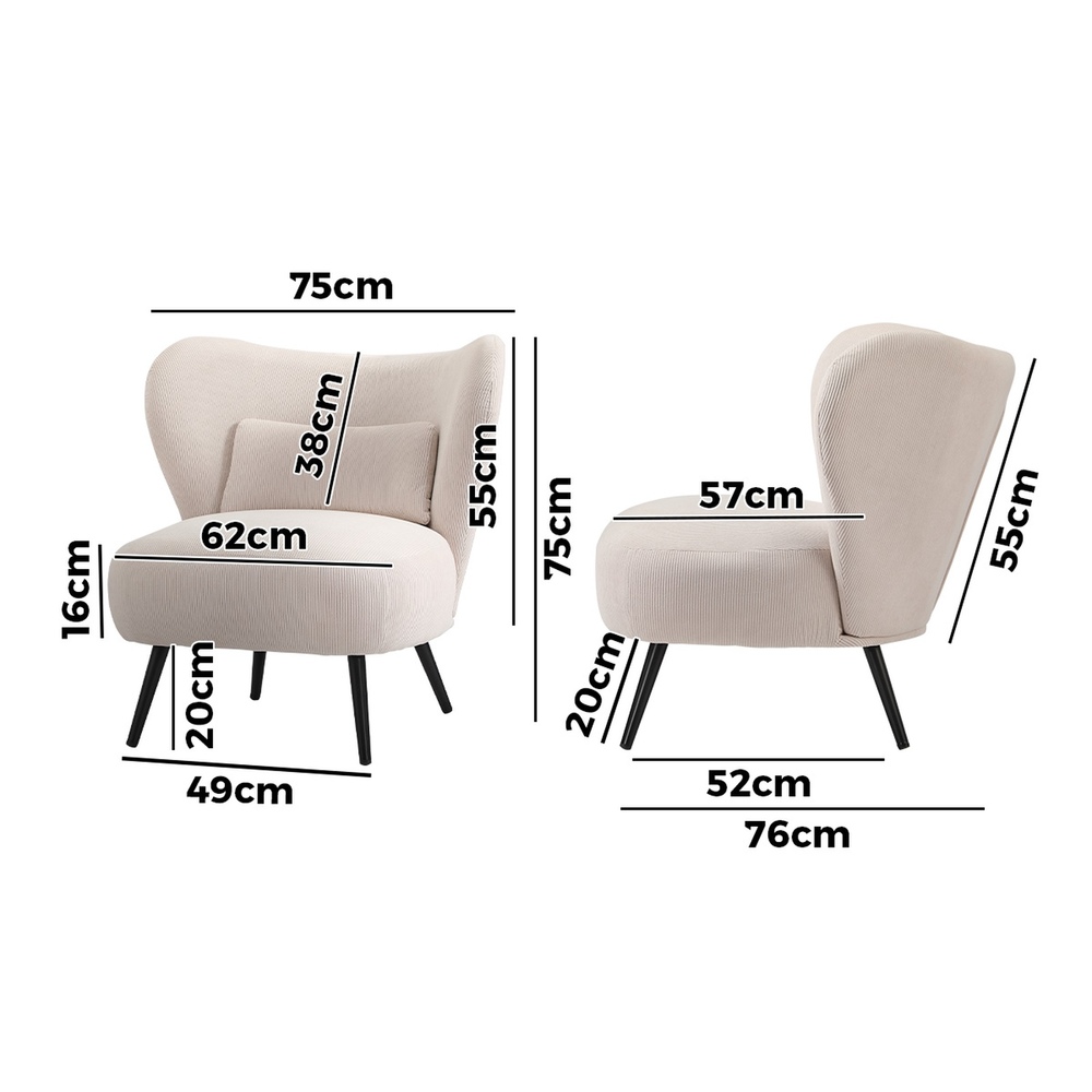Oikiture 2x Armchair Lounge Chair Lumbar Pillow Wingback Velvet Beige