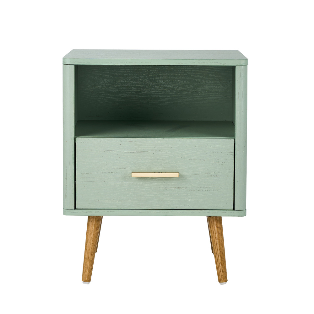 Oikiture 2x Bedside Table 1 Drawer Open Shelf Nightstand Green