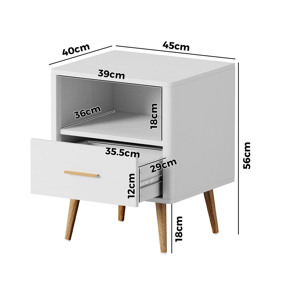 Oikiture 2x Bedside Table 1 Drawer Open Shelf Nightstand White