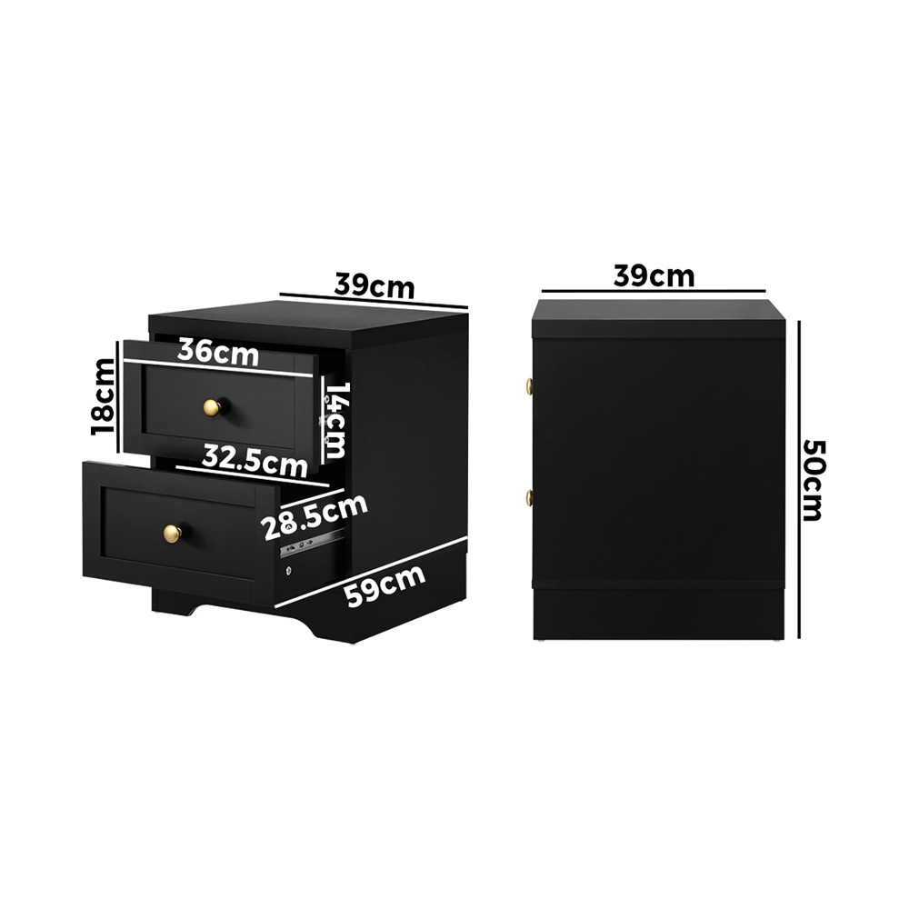 Oikiture 2X Bedside Tables Hamptons Furniture Black