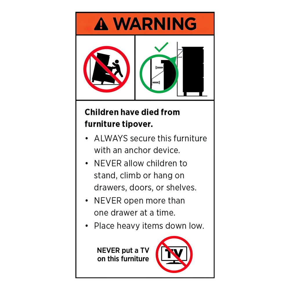 (a) always secure this furniture with an anchor device;