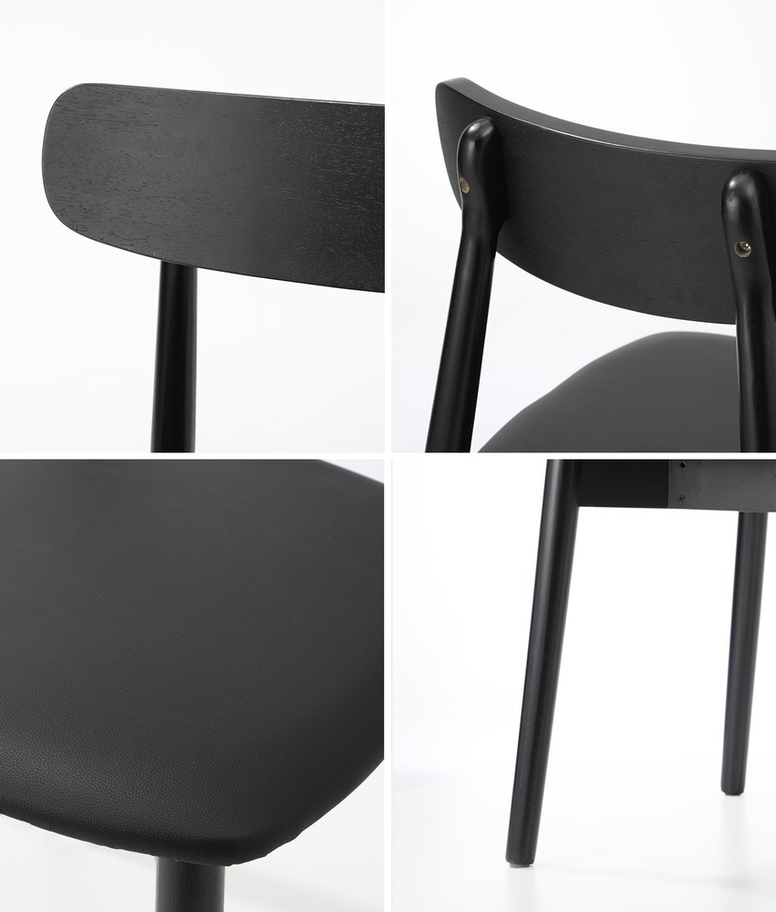 Oikiture 4x Dining Chairs PU Leather Solid Wood Black