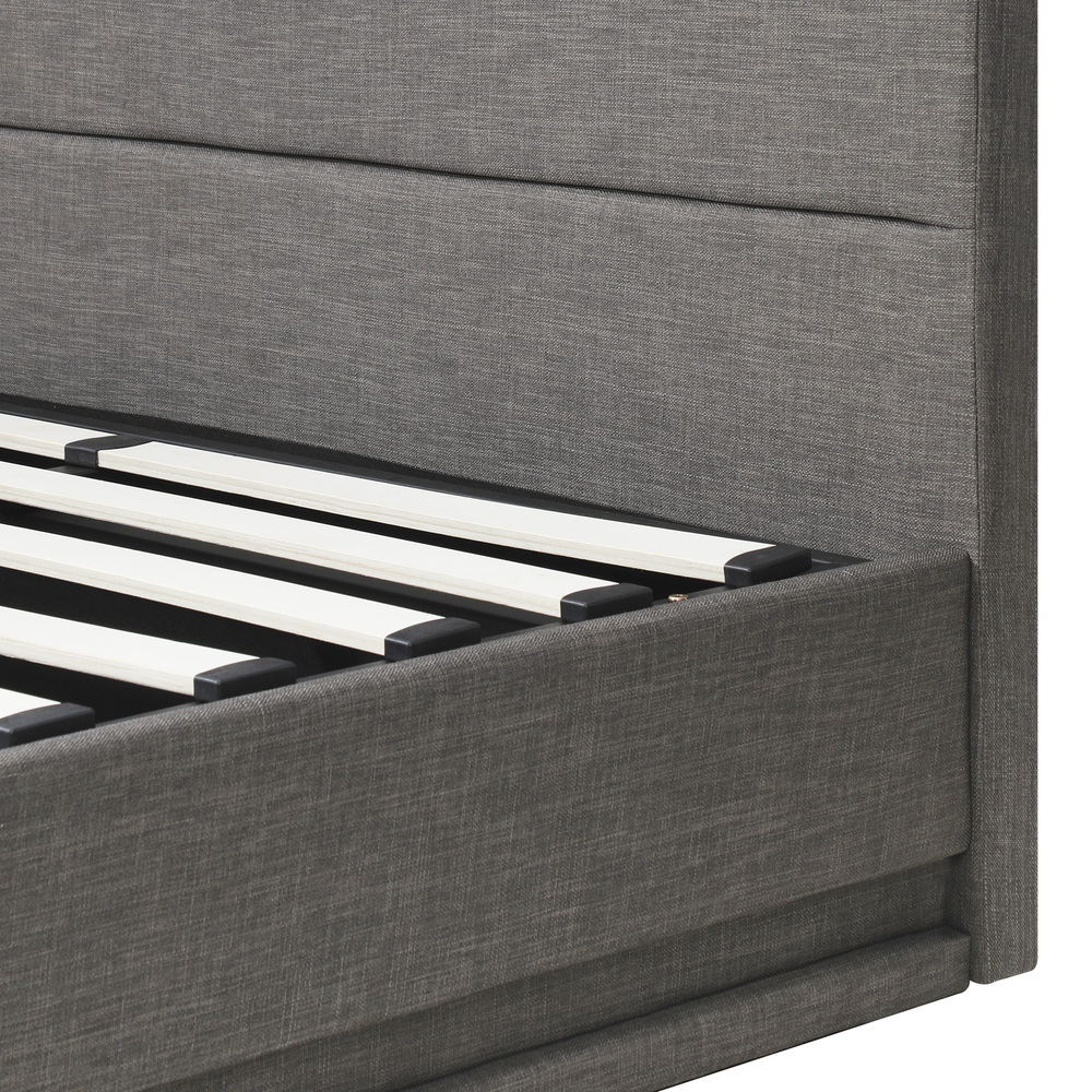 Need more storage real estate in your bedroom? Look no further than what is under the bed frame. With its assisted hydraulic gas-lift hinges, the bed can be easily brought up to reveal generous storage space for bedding and other assorted bedroom essentials.