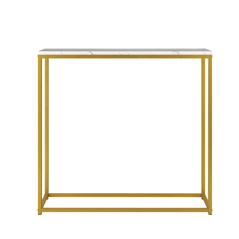 Oikiture Console Table Marble-look Iron Gold&White