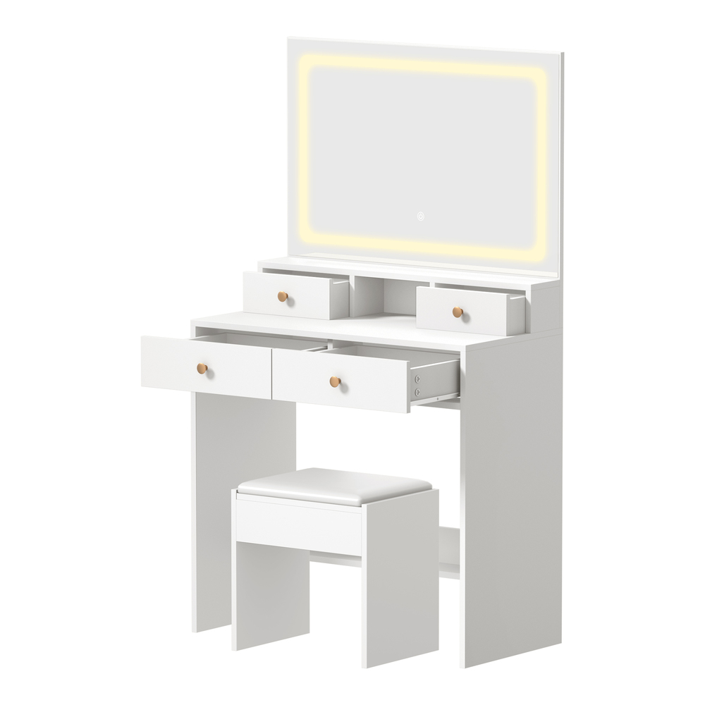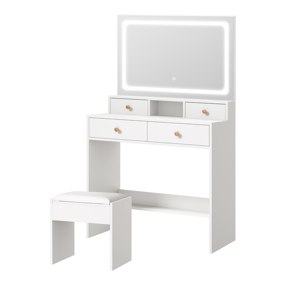 Oikiture Dressing Table Stool Set LED Mirror White