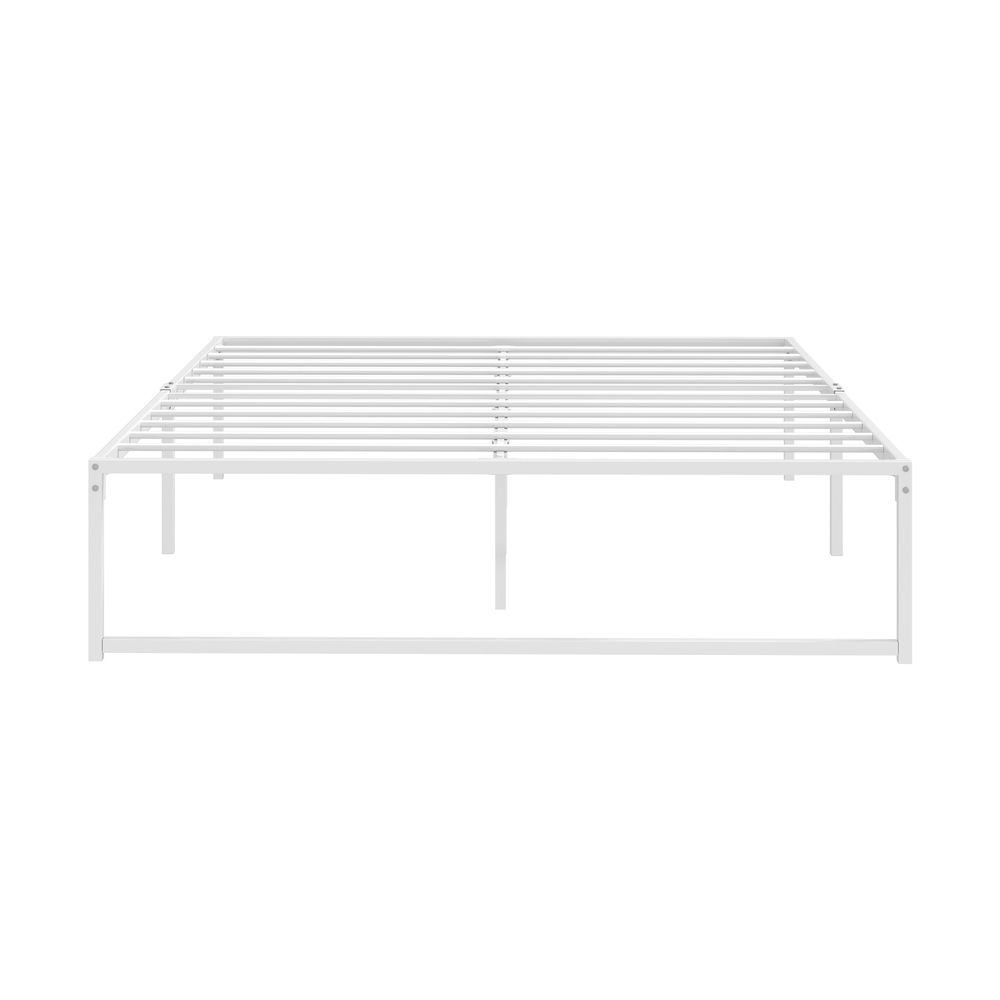 Oikiture Metal Bed Frame Queen Size Bed Base White