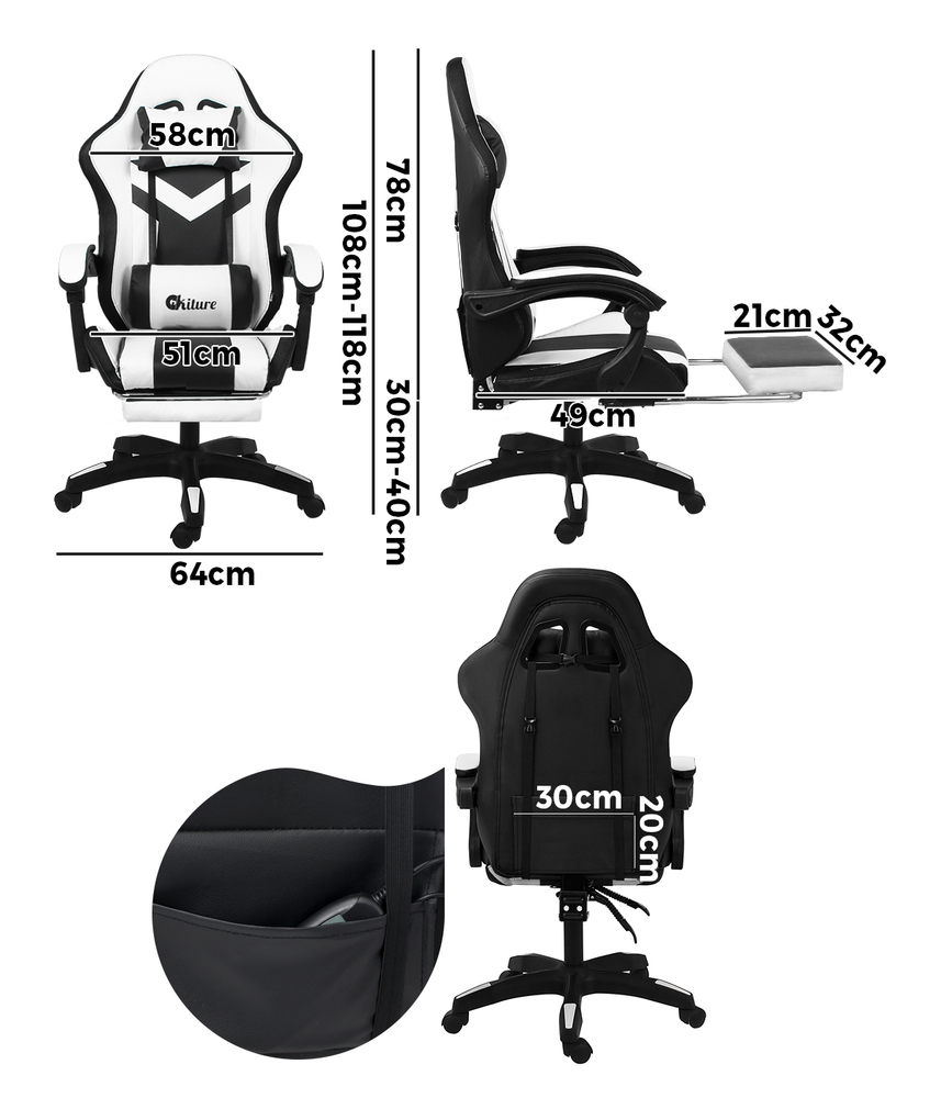 If you’re into gaming or the gaming chair look, then this Oikiture LED Gaming Chair is right up your alley. Designed to create the perfect sitting positioning for play or work, our gaming chair is not short on creature comforts. Such as the plush leather seating, versatile adjustments, retractable footrest, smooth movements with omnidirectional castor wheels and certified quality components.