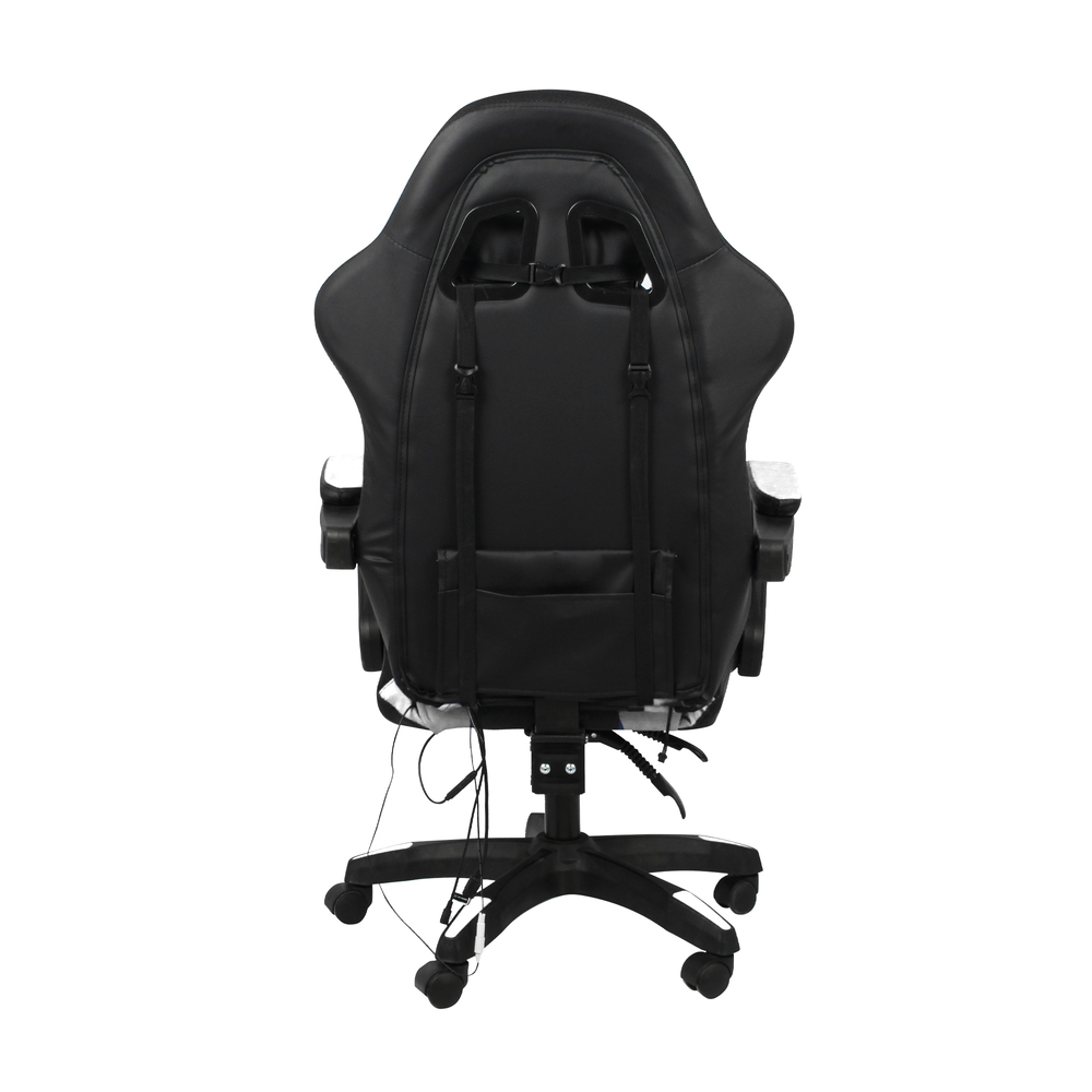 Oikiture Racing Gaming Chair 7 RGB LED 8 Points Massage Black&White