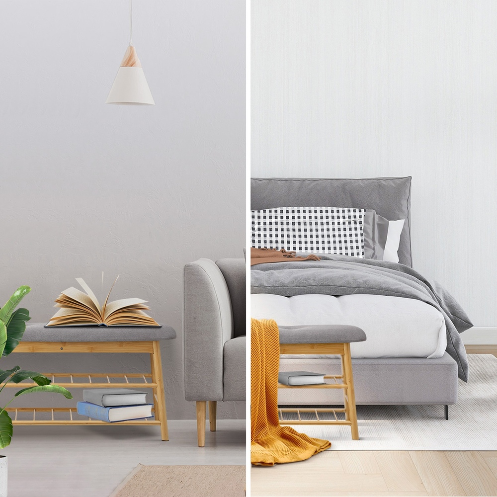 Keeping footwear neat and tidy and looking good too. The Oikiture Rattan Shoe Storage Bench will definitely add a touch of order and finesse to any hallway or entrance. The two-tier shoe rack is functionally adequate for a small number of footwear storage. But what’s great about this product is its 3-in1 function. As a bench, the richly padded sponge seat with a fabric upholstery makes for comfortable sitting to put on your footwear with minimum hassles. No need for any awkward balancing act. Lift up the bench and a vast hinged hidden storage is found just under the seat to store footwear paraphernalia or other assorted accessories. Everything is close at hand (or at feet). The bamboo construction also ensures that the shoe storage bench is strong and durable with a maximum weight capacity of up to 100kg. Safe for most people to use it without any worries. The finishing is smooth with fine attention to details that is backed by meticulous workmanship. Better still, do not confine this shoe storage bench to just the front entrance as it will work equally as satisfying in any home space where shoe storage is required. Not least, very little maintenance is needed with this shoe storage bench and just a simple wipe with a damp cloth is all that is needed to preserve its pristine condition. Assembly is a breeze too with the easy-to-follow instructions to get it up and standing in no time at all.