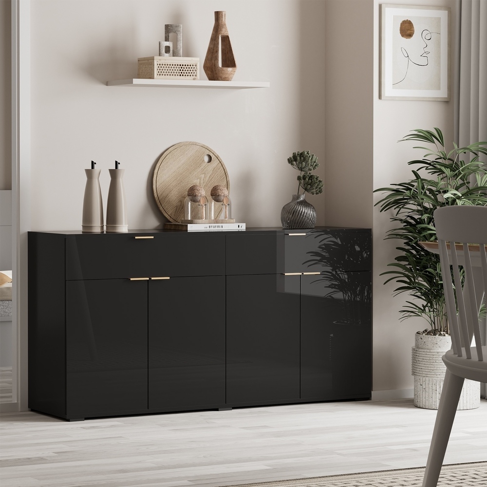 Oikiture Sideboard High Gloss 4 Doors 2 Drawers Black