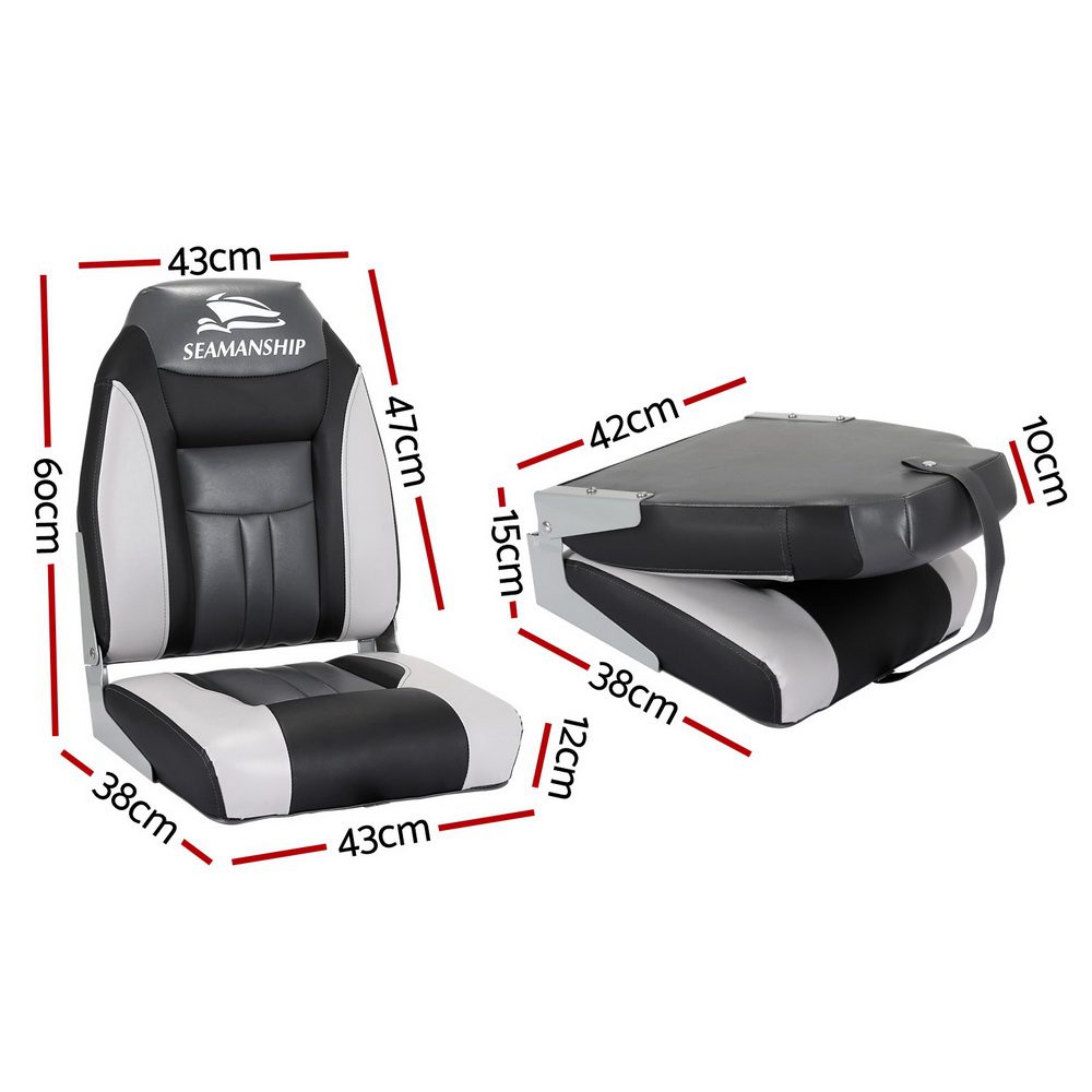 Set of 2 Swivel Folding Boat Seats – Grey Black
