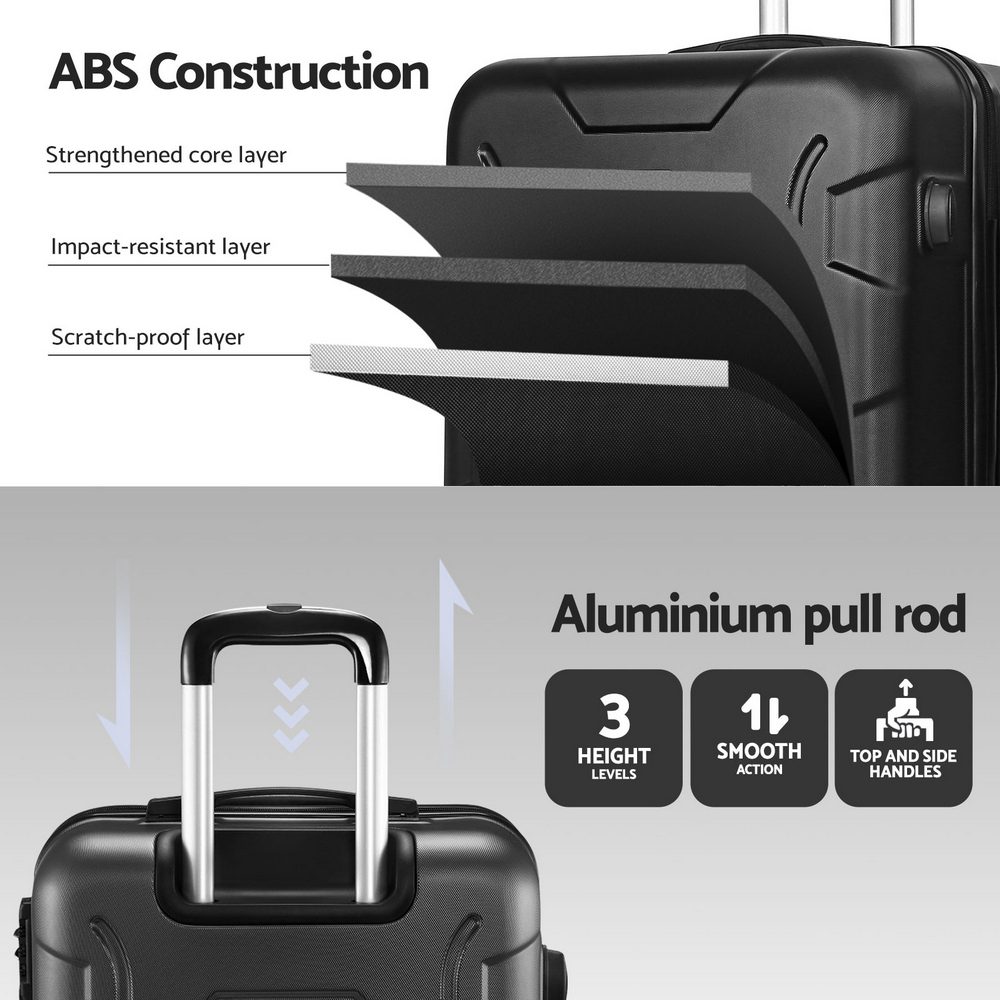 Featuring a durable hard shell, smooth 360° dual wheels and secured TSA-approved locks, our luggage trolley set is easy to carry or manoeuvre around airports, train stations or any transport hub where getting there on time is as important as arriving with peace of mind. Super lightweight and yet strong and sturdy, the Wanderlite Luggage is constructed with aluminium pull rod, corner guard protectors and top and side handles that add to the effortless handling of each luggage.