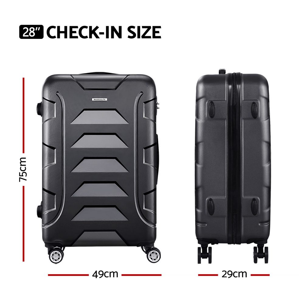 Wanderlite 28 Inch Luggage with TSA Lock Spinner Travel Suitcase Carry On Hard Shell Luggage Case Black