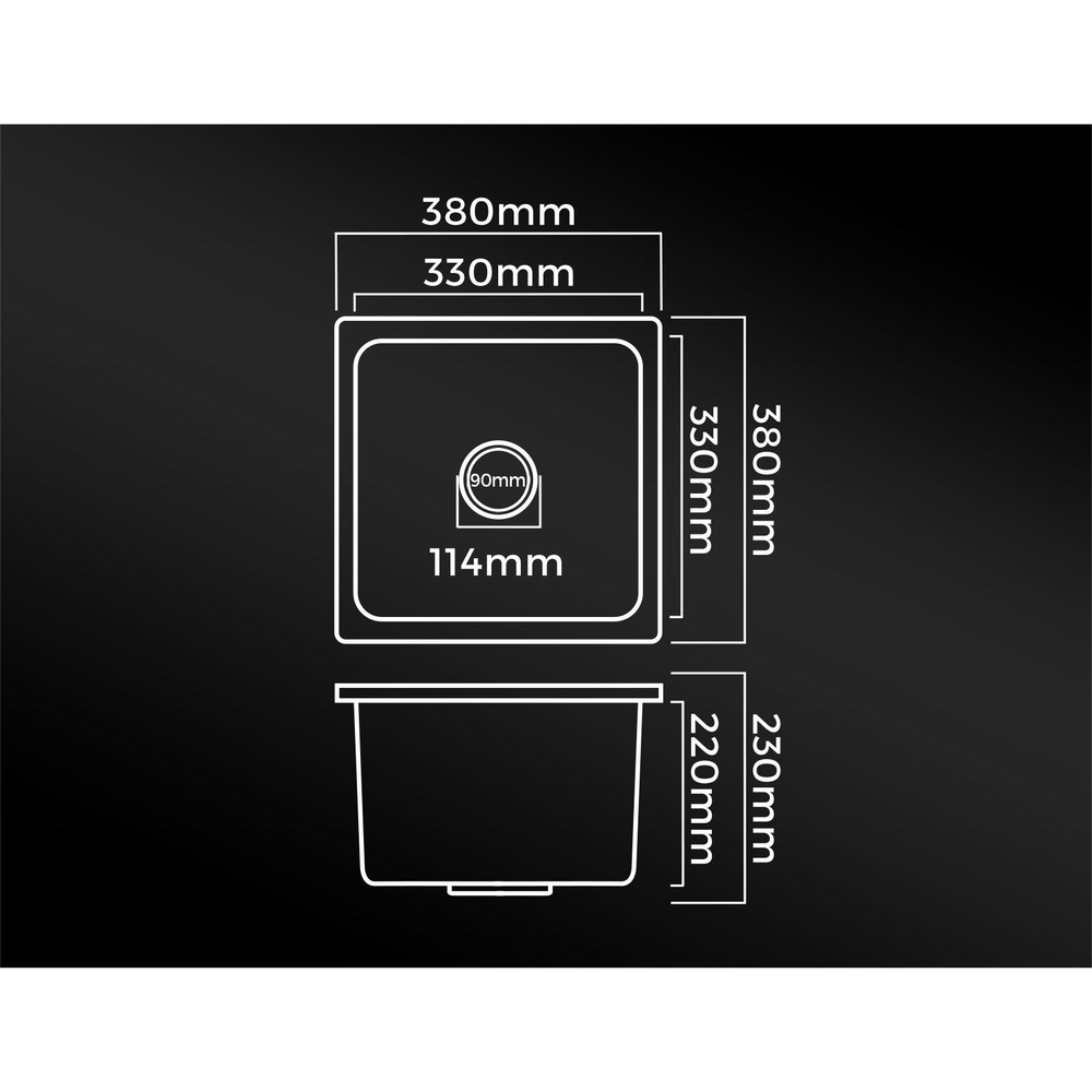 Welba Kitchen Sink 38x38cm Granite Basin Single Bowl Black