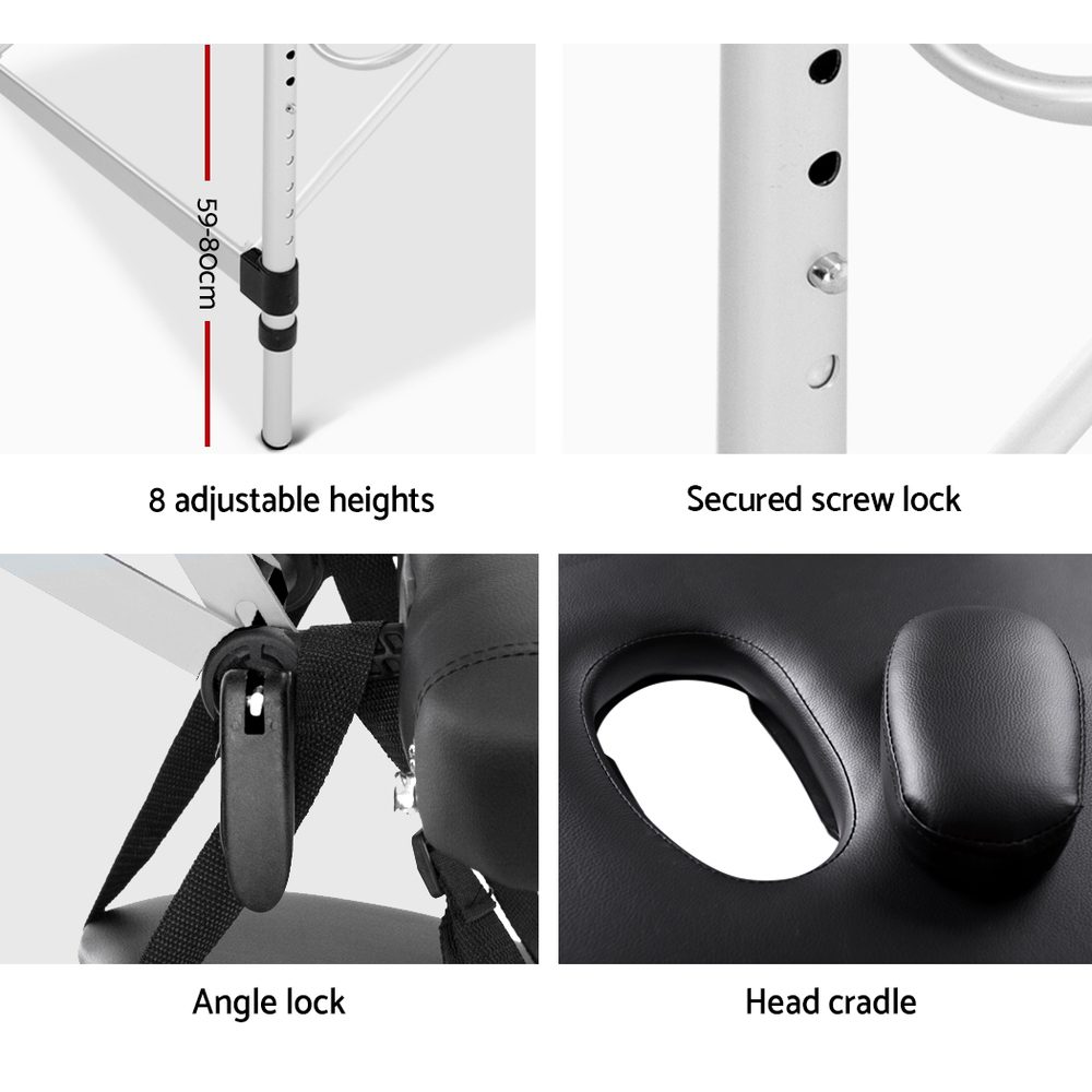 Moreover, it is made of aluminium giving it a robust structure, be assured it’s made to last. It may not look like it, but its sturdy structure supports up to 250kg while the massage table only weighs 17kg alone. And with 8 height adjustments, you can choose the height that is most comfortable for your client.