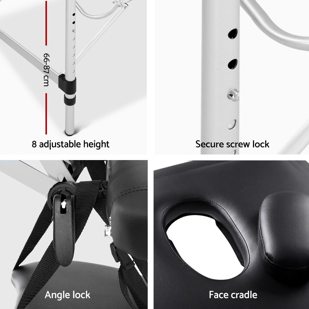 Portable Aluminium 3 Fold Massage Table Chair Bed Black 60cm