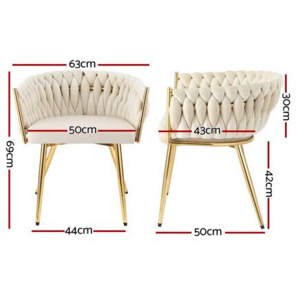 1 Set of 4 Artiss Dining Chairs Velvet Armchair Beige